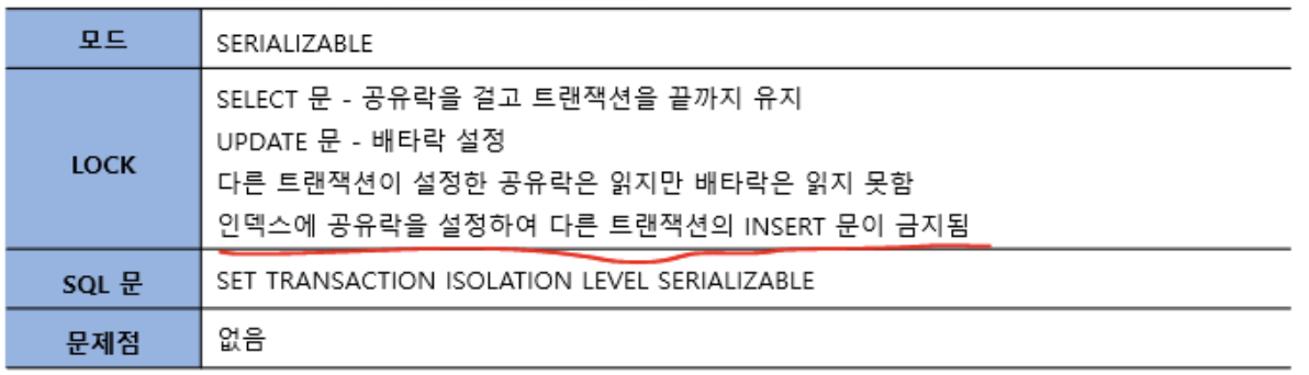 트랜잭션이 완료될 때까지 SELECT 문장이 사용하는 모든 데이터에 Shared Lock 이 걸리는 계층